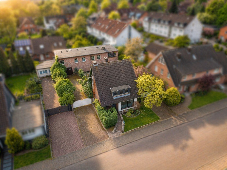 Auf einem ca. 767 qm großen Grundstück in Bottrop-Stadtmitte erwartet Sie ein Immobilienangebot, das deutlich mehr bietet als ein klassisches Einfamilienhaus. Das Immobilienensemble besteht aus einem Vorder- und Hinterhaus aus Mitte der 1960er-Jahre. Beide Gebäude befinden sich auf einem gemeinsamen Grundstück und eröffnen dadurch unterschiedliche Nutzungsperspektiven - vom Mehrgenerationenwohnen über die Kombination aus Eigennutzung und Vermietung bis hin zu Wohnkonzepten mit zusätzlichem Lager-, Hobby- oder Werkstattbedarf. Bereits die Grundstückssituation ist besonders: Links und rechts des Vorderhauses führen eigene PKW-Zufahrten in Richtung des rückwärtigen Hof- und Hinterhausbereichs. Dadurch entsteht eine komfortable Erschließung des gesamten Grundstücks. Das Grundstück bietet einen großzügig gepflasterten Hofbereich, eine klare Trennung zwischen Vorder- und Hinterhaus sowie vielseitig nutzbare Außenflächen mit guter Befahrbarkeit. Gerade diese Anordnung macht das Angebot für Käufer interessant, die nicht nur Wohnfläche, sondern auch Nutzfläche, Stellplatzmöglichkeiten und Entwicklungsspielraum suchen.
